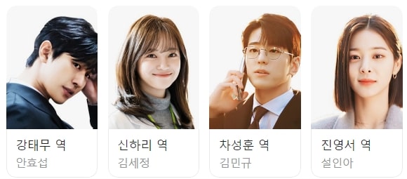 드라마 출연진에는 안효섭, 김세정, 김민규, 설인아, 이덕화, 김광규, 정영주, 김현숙, 고욱, 최병찬, 임기홍, 윤상정, 배우희, 서혜원 배우 등이 출연했으며